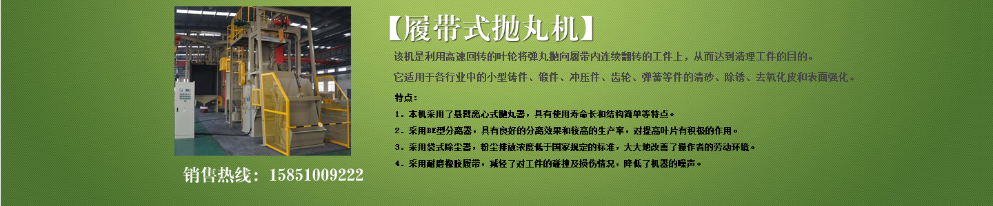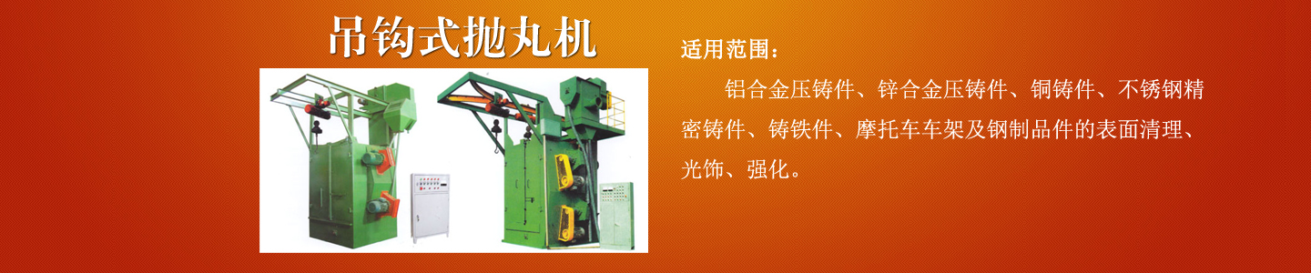 公司主要產品有各種型號拋丸機、履帶式拋丸機、吊鉤式拋丸機、懸鏈式拋丸機、通過式拋丸機;各種型號鑄鋼丸、鋼砂、合金鋼丸、強化鋼丸、不銹鋼丸;噴砂設備;環(huán)保除塵設備;鑄造設備;高效拋丸器;各種型號拋丸機配件等,并可根據(jù)用戶產品及產量需求設計符合要求的拋丸機;本公司產品從設計、開發(fā)、生產到服務,全過程實行監(jiān)控,其產品在全方位立體的營銷服務網絡中,遍布全國各省市區(qū)。